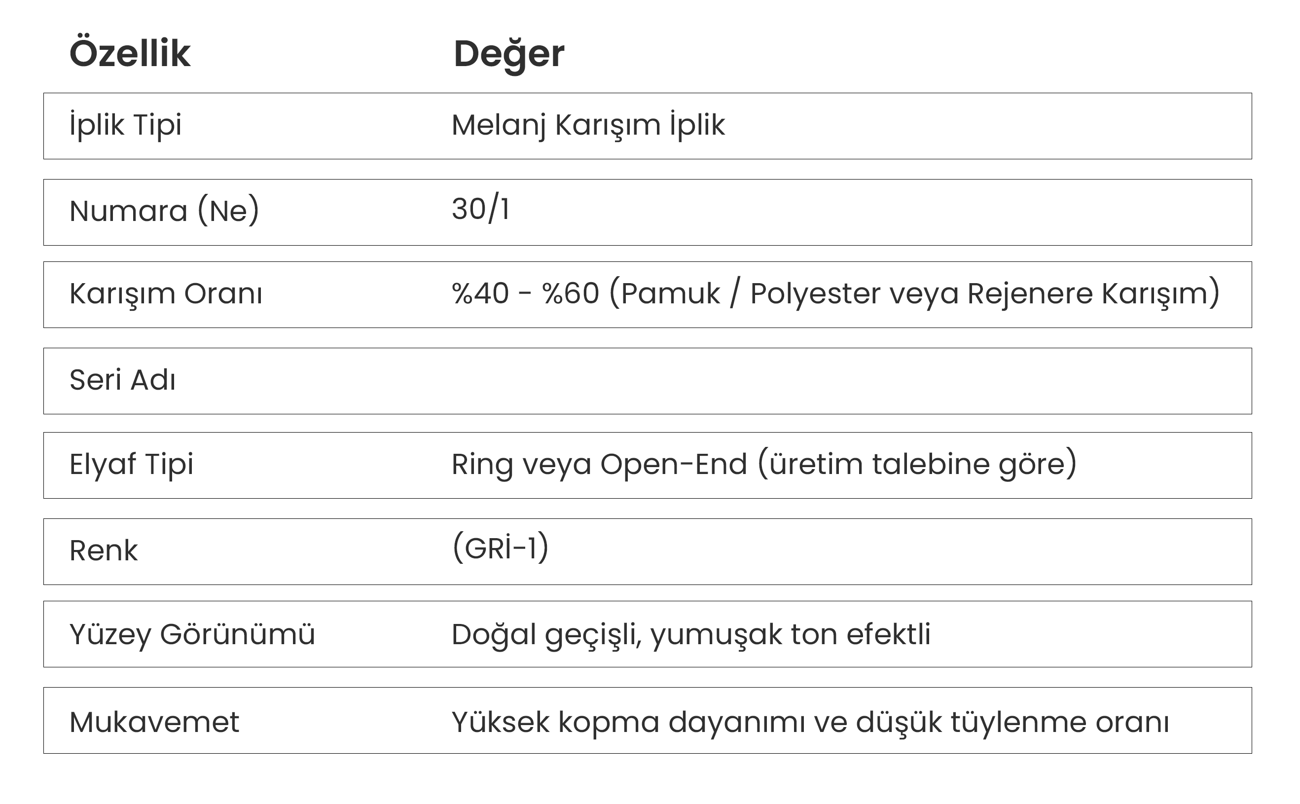 MELANJ İPLİK GRUBU (GRİ-1) – NE 30/1 (%40 - %60)