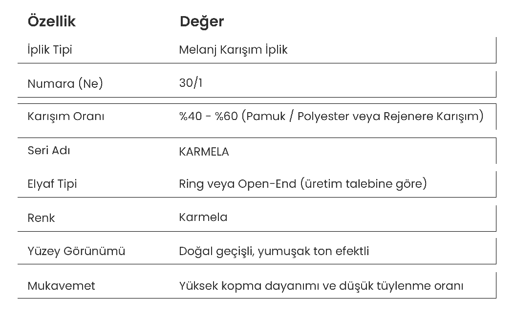 MELANJ İPLİK GRUBU (KARMELA) – NE 30/1 (%40 - %60)